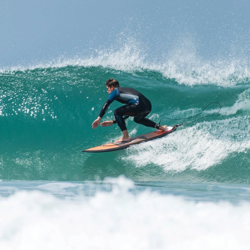 The Osprey Men’s Zero Wetsuit sets a new standard for entry level wetsuits. Part of the ‘Zero’ range, this stylish 3/2mm full length wetsuit has been created with beginner and intermediate surfers in mind. Combining comfort, warmth and supreme flexibility the Zero Wetsuit is great for all different kinds of water sports and activities. With insulating 3mm fine mesh foam surrounding the chest, 2mm super stretch foam surrounding the sleeves, shoulders and lower legs; the Zero delivers comprehensive wind and chill resistance. Secured together with durable flatlock seams, the 3/2mm Zero is great for warmer water temperatures of the summer months across UK coasts.The 3mm Supratex knee pads provides further protection from the harsh elements whilst still allowing you to maintain flexibility while out on the water. Featuring a stylish blue, grey and black minimalistic design, anti-rub openings, super stretch collar and durable zip closure at the back, the Zero is packed with many features you would expect to find on a more expensive suit.