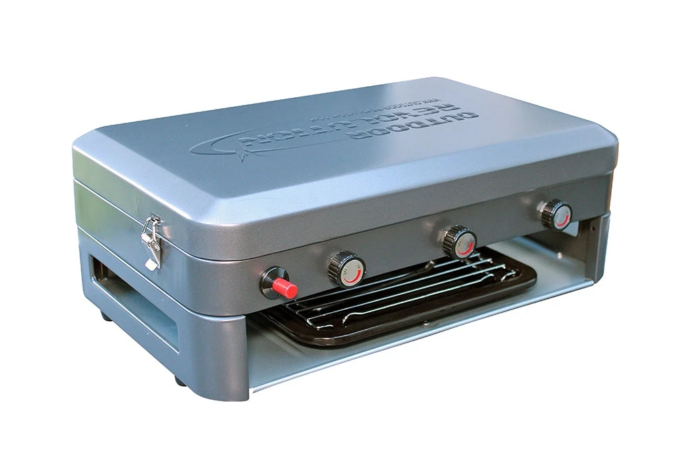 Outdoor Revolution’s new and unique Twin Burner Gas Stove and Grill offers the perfect blend of high performance with compactness and style. Thanks to the braided hose with control valve which takes a Butane Propane screw fitting resealable gas canister, there is no need to use a separate hose and regulator with a refillable gas cylinder, which cuts down on space and weight during transportation. This is the only Twin Burner we know of in the market currently that has 2 burners and a grill that takes this type of high-power gas canister. You only pay for the gas you need to use when you are away whether it be for a weekend or an extended trip.