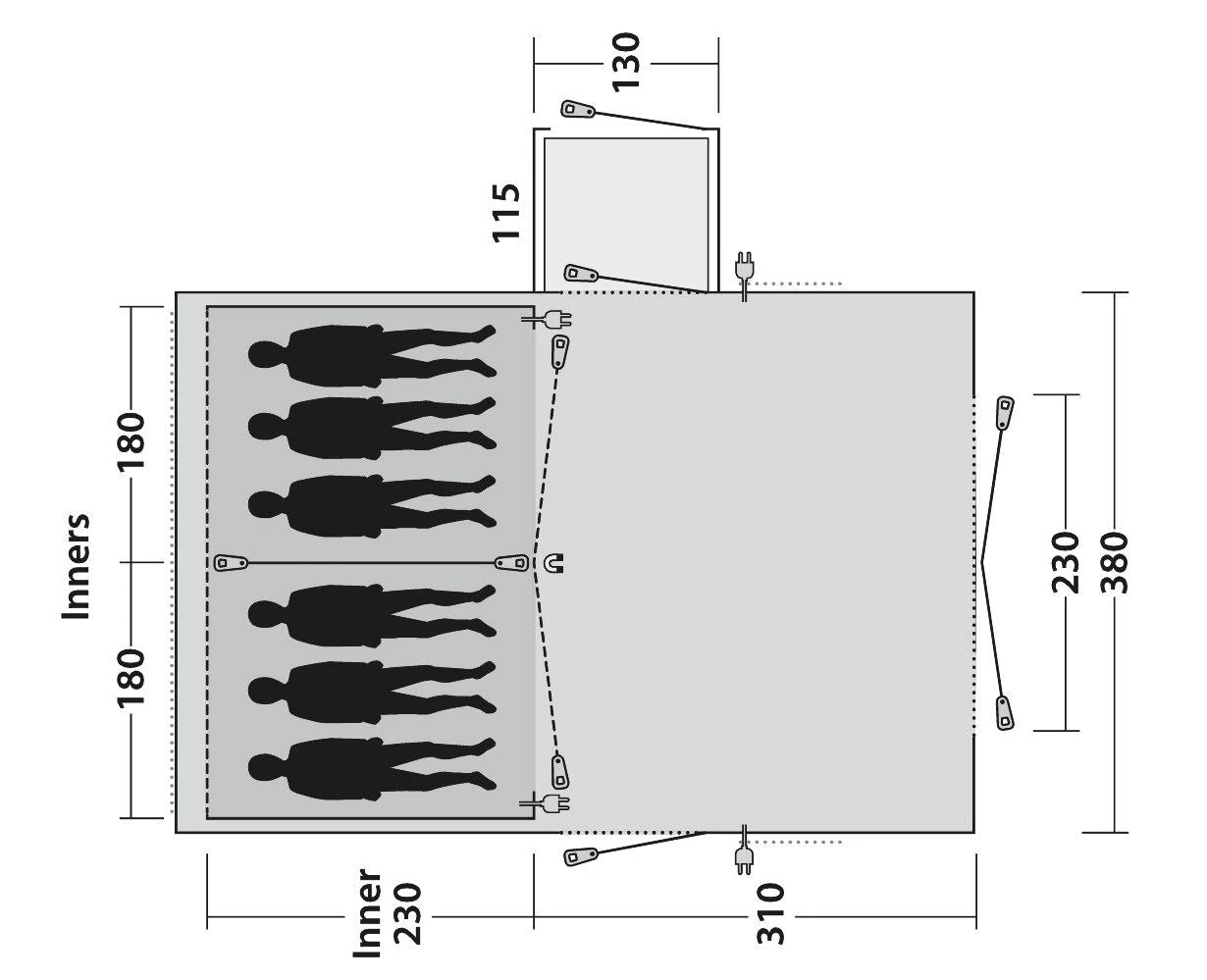 Sleeping six in two Ambassador Master Bedrooms featuring Dark Inners and Quick & Quiet Inner Doors, the Montana 6PE offers generous tent living space. Twin side doors, one with a deep porch, ensure versatile access and extend ventilation options. Pre-bent poles deliver superb stability, steep walls to maximise internal space and full headroom throughout. With the Outwell HookTrack System, Easy Pegging System, Cable Entry, zip-up curtains and Rear Ventilation System, home from home comfort and convenience is assured.