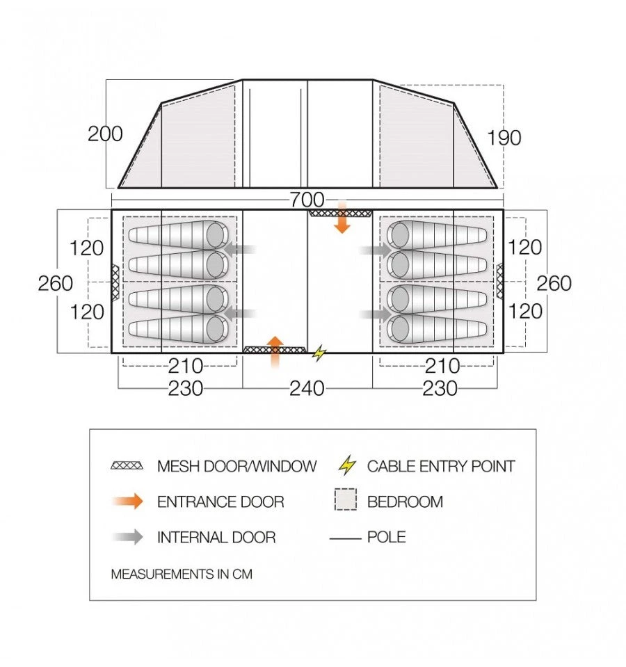 - Vango AirZone – High and low level ventilation panels combine to create a comfortable flow of air through the tent. Air circulation is essential for reducing condensation